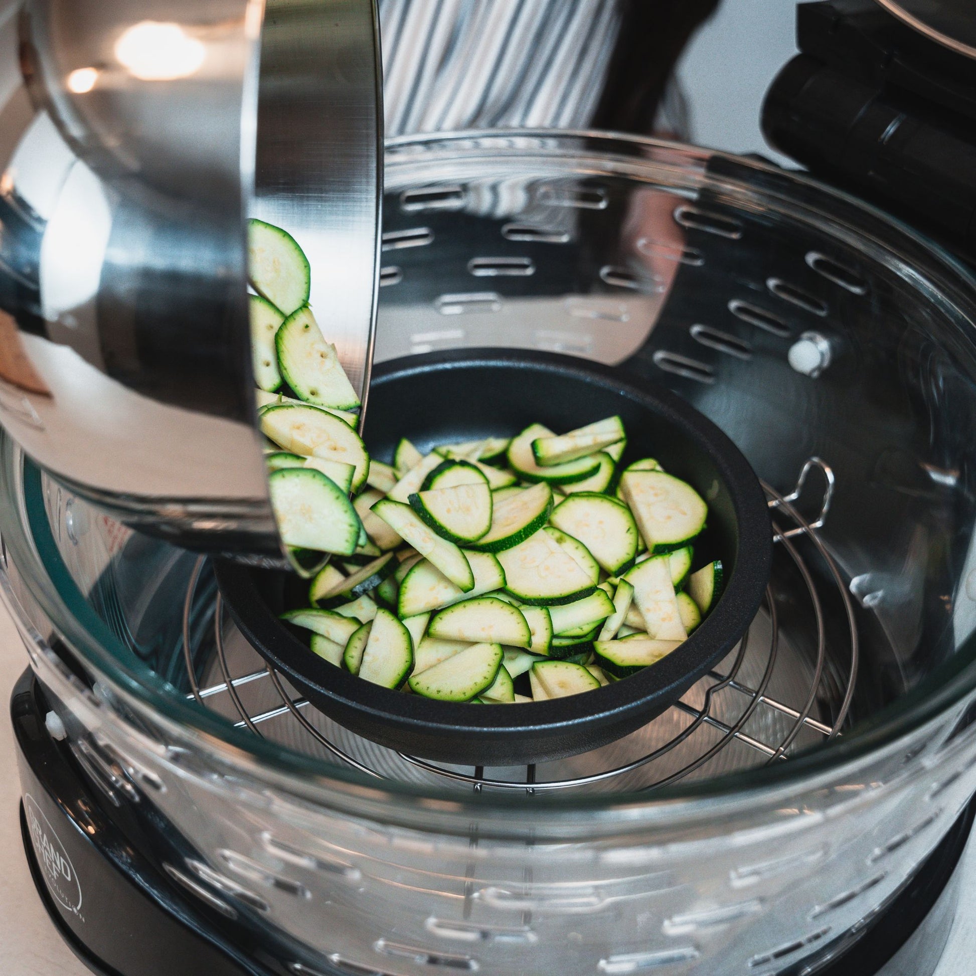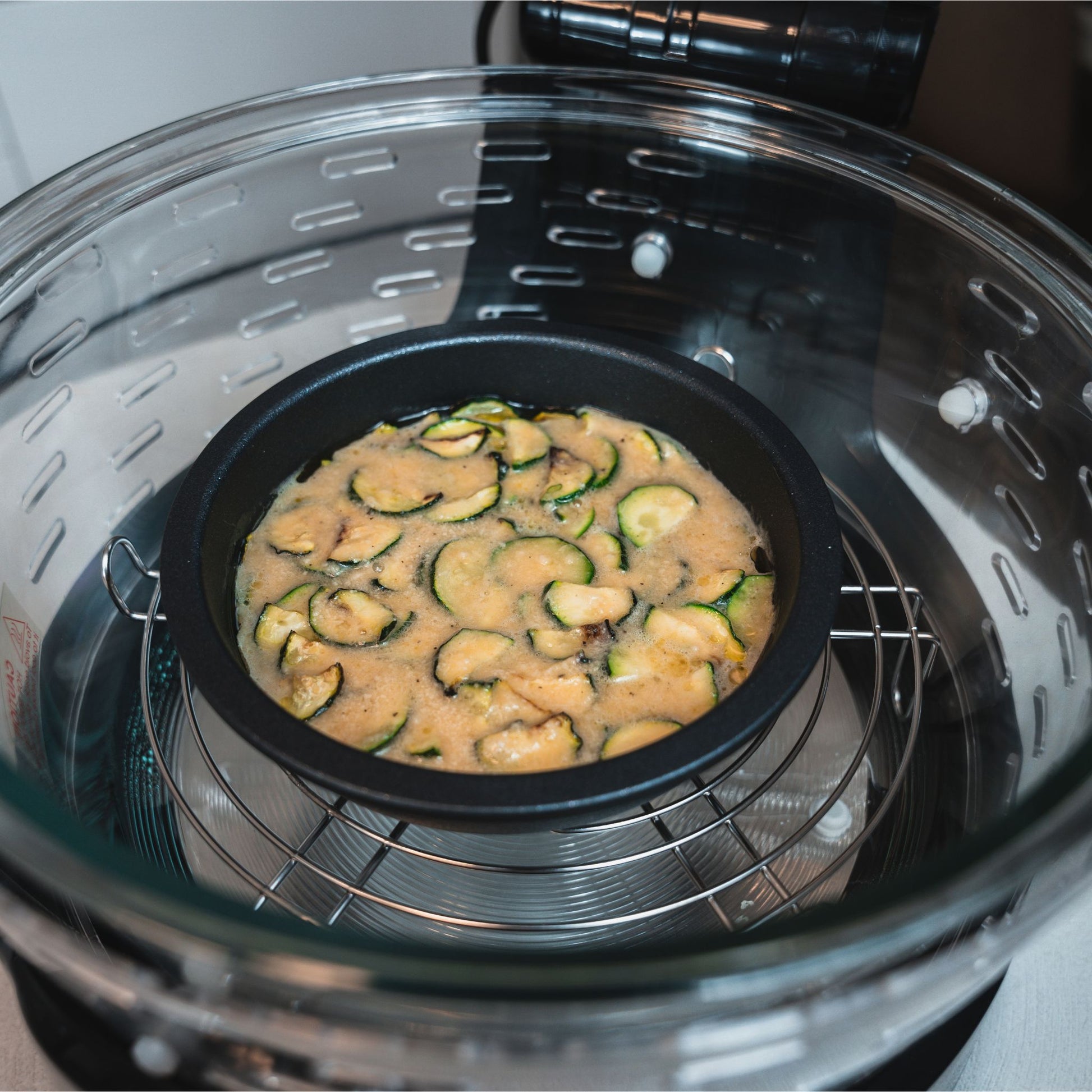 È combinabile con le teglie della linea Professional, che fungono da coperchio/piastra e permettono la cottura contemporanea di più pietanze in spazi ridotti.